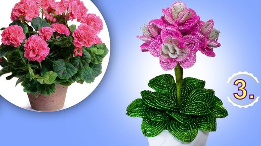 Бисероплетение. 3 ЧАСТЬ. Мастер класс .Цветок из бисера Пеларгония - Герань . .оформление. Пошаговый МК.