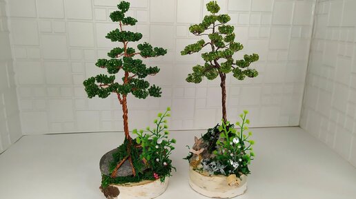 Работы из бисера. 1ЧАСТЬ. Сувенир. Дерево из бисера. Сосна, бонсай. Мастер класс для начинающих.