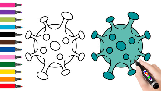 Учимся рисовать коронавирус поэтапно. Рисунки для детей.