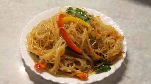 Салат с фунчозой и морепродуктами. Корейский салат.