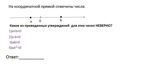 ОГЭ по математике. Выбрать неверное утверждение для чисел на координатной прямой.