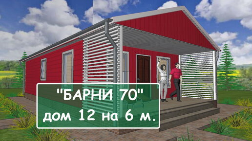 Каркасный дом 12 на 6 м. Утепление 100 мм. Модель - "Барни 70". Дачный дом.