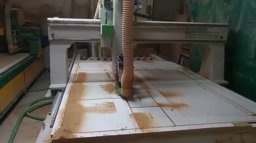 Нестинг целого листа на универсальном 4 осевом ЧПУ станке G-2130-4VSL с функцией производства гнутых фасадов.