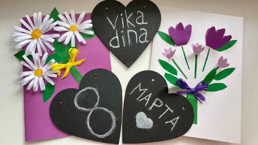 ОБЪЕМНАЯ ОТКРЫТКА НА 8 МАРТА🌸|ОТКРЫТКА ИЗ КАРТОНА НА 8 марта|ОТКРЫТКИ с 8 марта цветы||DIY