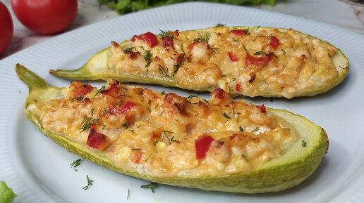 Фаршированные кабачки с сочной начинкой из фарша с овощами.
