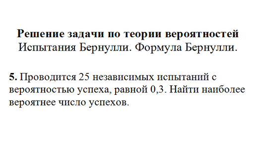 Пример решения задачи на тему испытания Бернулли, формула Бернулли задача №5 Высшая математика