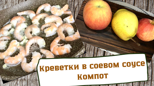 Креветки в соевом соусе | Компот из свежих фруктов.