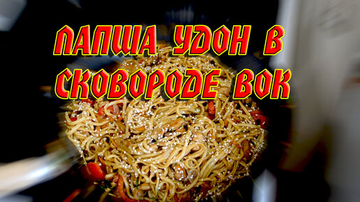 Лапша удон в сковороде вок wok с курицей и овощами Большая порция