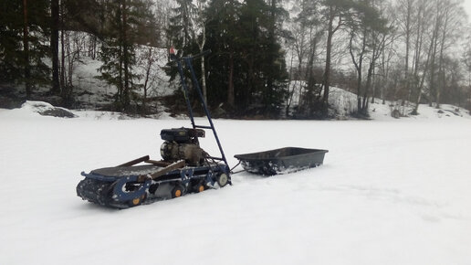 Далее: Теси-драйв Мотобуксировщика по мокрому снегу с дровами
