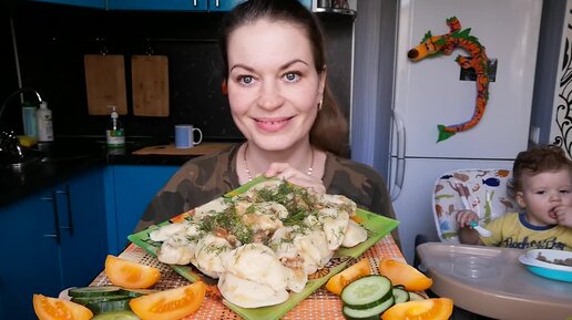 МУКБАНГ ВАРЕНИКИ С КАРТОШКОЙ, ЖАРЕНЫМ САЛОМ И ЛУКОМ/MUKBANG