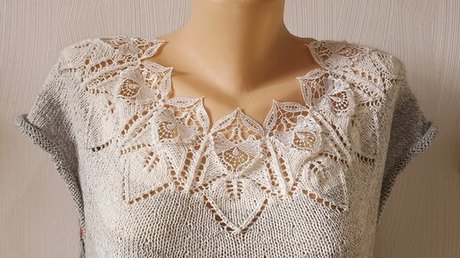 Летний джемпер "Дымчатый топаз" с ажурной кокеткой из YarnArt Flowers, 2 часть МК