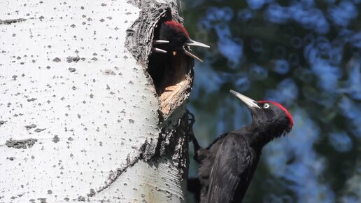 Мухоловка-белошейка, Большой пёстрый дятел и Чёрный дятел (желна).