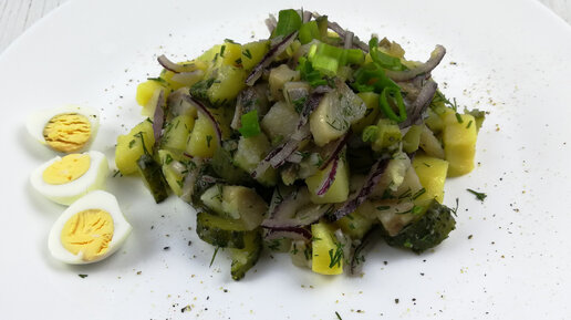 Отличная закуска или быстрое блюдо для перекуса! Картофельный салат с копчёной сельдью.