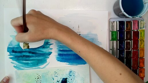2 способа рисовать море акварелью | Для начинающих #море #акварелью