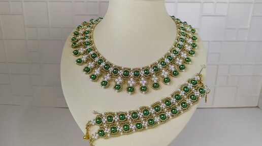 Украшение из бисера. 6. Комплект. Ожерелье и браслет из бисера.