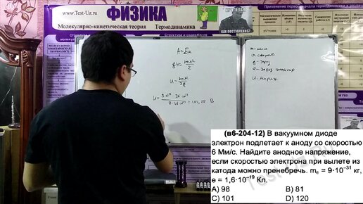 В вакуумном диоде электрон подлетает к аноду со скоростью 6 Мм/с. Найдите анодное напряжение, если скоростью электрона при вылете из катода