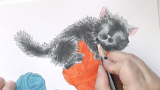 Как нарисовать шерсть с помощью двух серых маркеров и чёрного карандаша