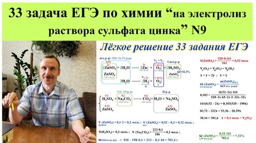 33 задача №9, на электролиз раствора сульфата цинка.