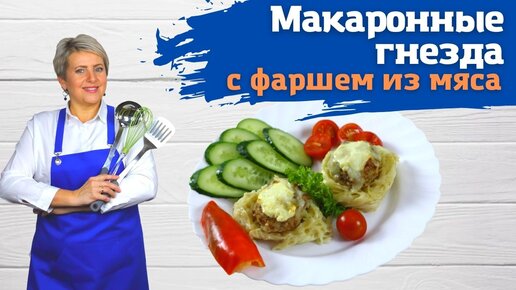 Макаронные гнезда с фаршем из мяса. Сытно, быстро и вкусно!