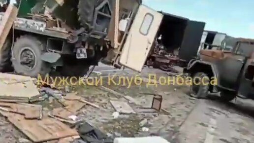 Разгромленная колонна снабжения украинской армии в Сумской области.