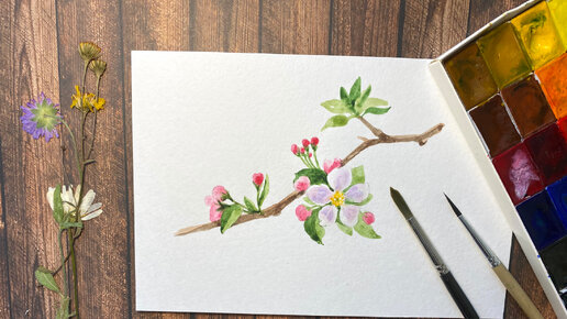 Как нарисовать веточку цветущей яблони акварель. Пошаговое рисование для начинающих