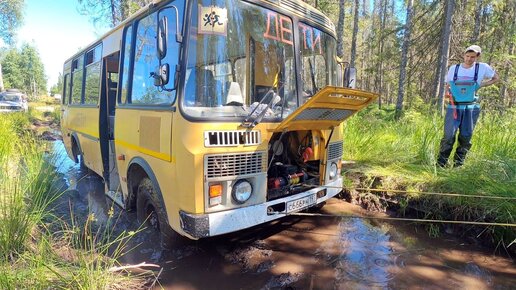 Детский автобус ПАЗ 4x4 на колесах от ГАЗ 66 на бездорожье!