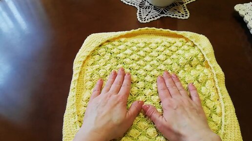 Вяжем вместе двухсторонний чехол на табурет. Подробный МК