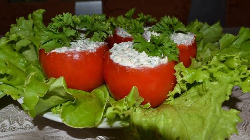 Вкусная холодная закуска – фаршированные помидоры с сыром фета. Разлетается на ура!