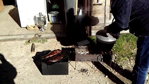варим уху и коптим рыбу.