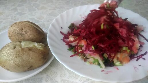 Сделала три салата, гречку и тыкву. Быстро и полезно!