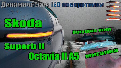 динамические led поворотники в зеркала обзор для Skoda Octavia 2 A5 SuperB B6 3T