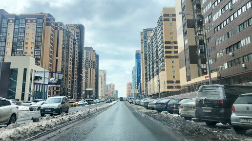 Город Реутов. Едем по Юбилейному проспекту в начале апреля. Взгляд из машины.