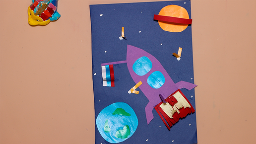 Поделка Космос, аппликация на тему космос, на день космонавтики, простая поделка, ко дню космонавтики, в детский сад, из бумаги