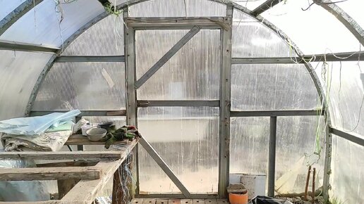 Решил показать, что у меня растет в двух самодельных теплицах 6 апреля.