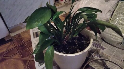 пересаживаем спатифиллум (женское счастье) в новый горшок.