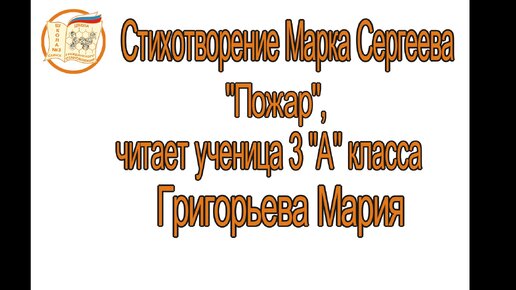 Григорьева Мария, стихотворение М.Сергеева "Пожар" (3 класс)
