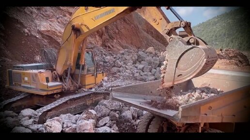 Экскаватор Liebherr 974 Загружает самосвалы Caterpillar 775B