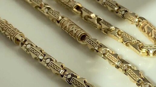 Мужская цепочка из желтого золота с узором меандр на звеньях