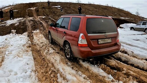 Subaru Forester пытается заехать в гору, но автоматическая коробка передач не дает этого сделать