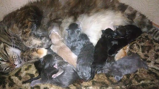 Котята мейн-кунята. Первый день жизни