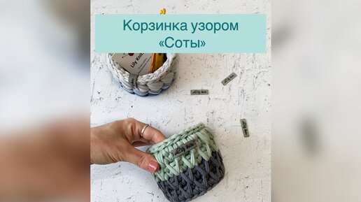 Корзинка из трикотажной пряжи узором "Соты"/ Корзинка крючком / Интерьерная корзинка
