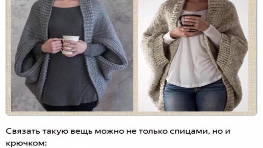Кардиган-кокон из большого прямоугольника можно связать спицами, крючком, сшить.