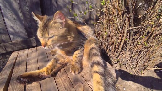 Отдых питомцев в теплый день.