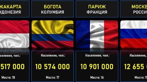 Топ 30 самых населенных городов мира по странам (1 город-1 страна)