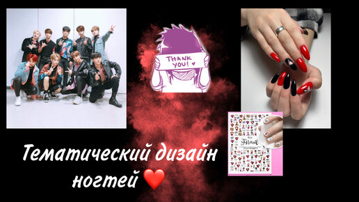 Тематический дизайн ногтей 💅🏽❤️🖤к-поп группа 🎸