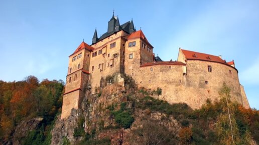 Средневековый рыцарский замок Крибштайн в осеннем лесу