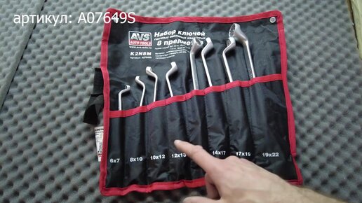 Набор ключей гаечных накидных изогнутых в сумке (6-22 мм) (8 предметов) AVS K2N8M