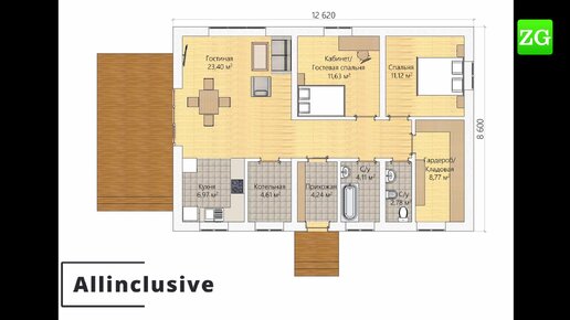 Презентация проекта Зягорянка, одноэтажный дом из газобетона от LAIFhouse