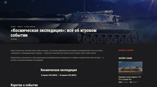 КОСМИЧЕСКАЯ ЭКСПЕДИЦИЯ ✦ 1 000 000 СЕРЕБРА КАЖДОМУ ✦ НОВОЕ СОБЫТИЕ В ТАНКАХ