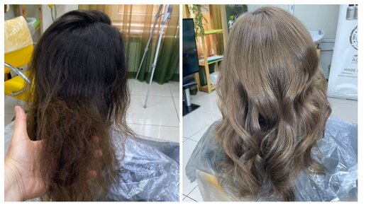 Из черного в светло-русый натуральный оттенок 8.0 Обесцвечивание волос черной пастой и тонирование